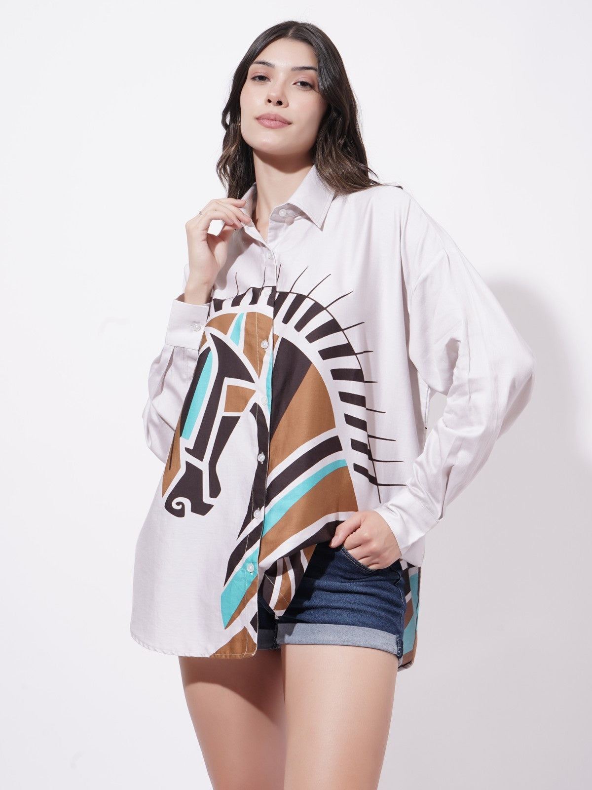 “Where art meets everyday wear — these oversized shirts feature digitally printed designer artworks on breathable pure cotton. Lightweight and versatile, they offer a relaxed silhouette that pairs effortlessly with denims, trousers, or shorts, making them perfect for creative day dressing, casual evenings, or travel chic.”